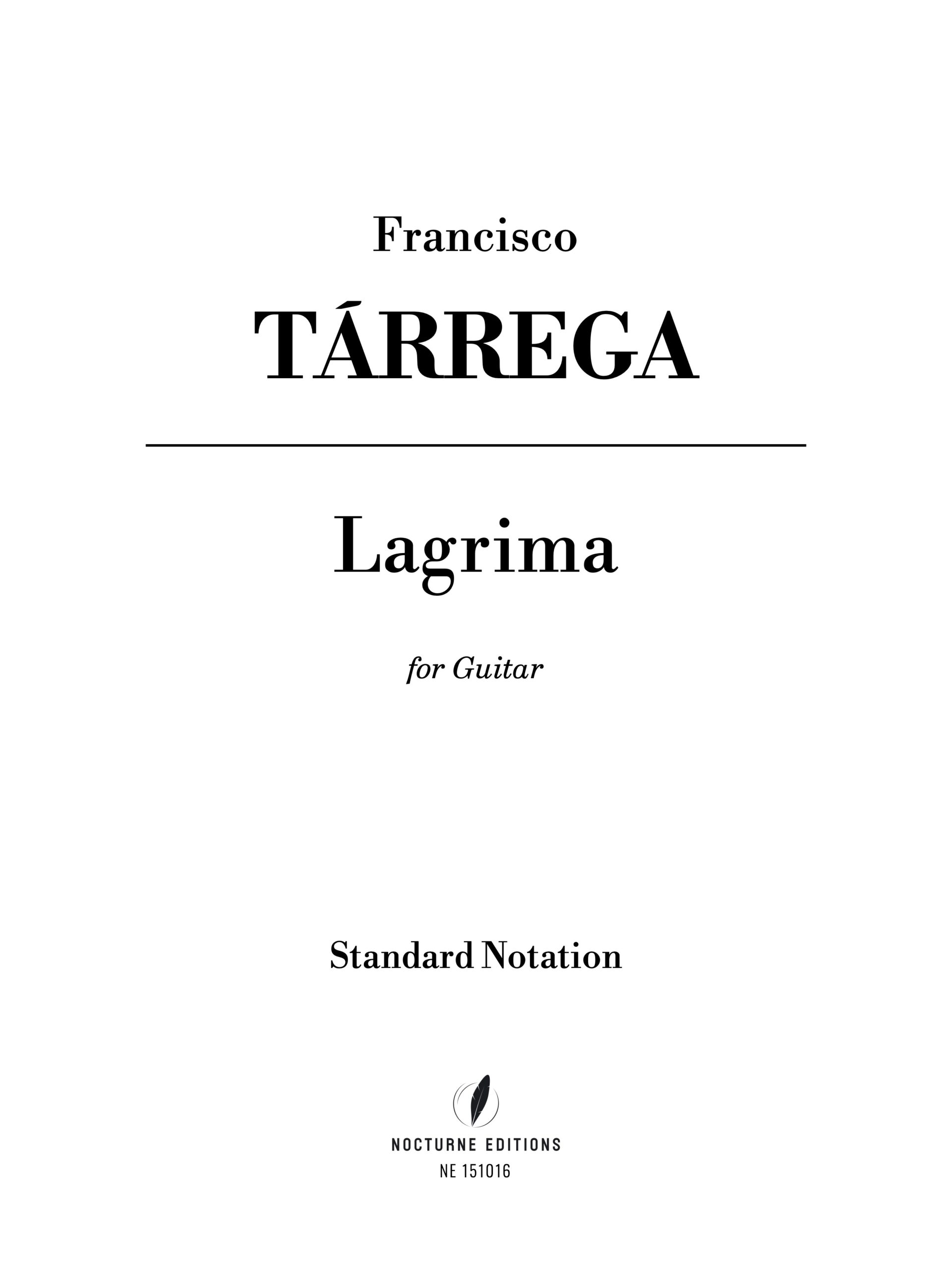This Nocturne Editions release presents a refined, easy-to-read engraving of Tárrega’s Lágrima, one of the most lyrical and frequently performed works in the classical guitar repertoire. The score is prepared in a clean 9×12 concert format, ensuring excellent readability for both printed copies and digital tablet use.